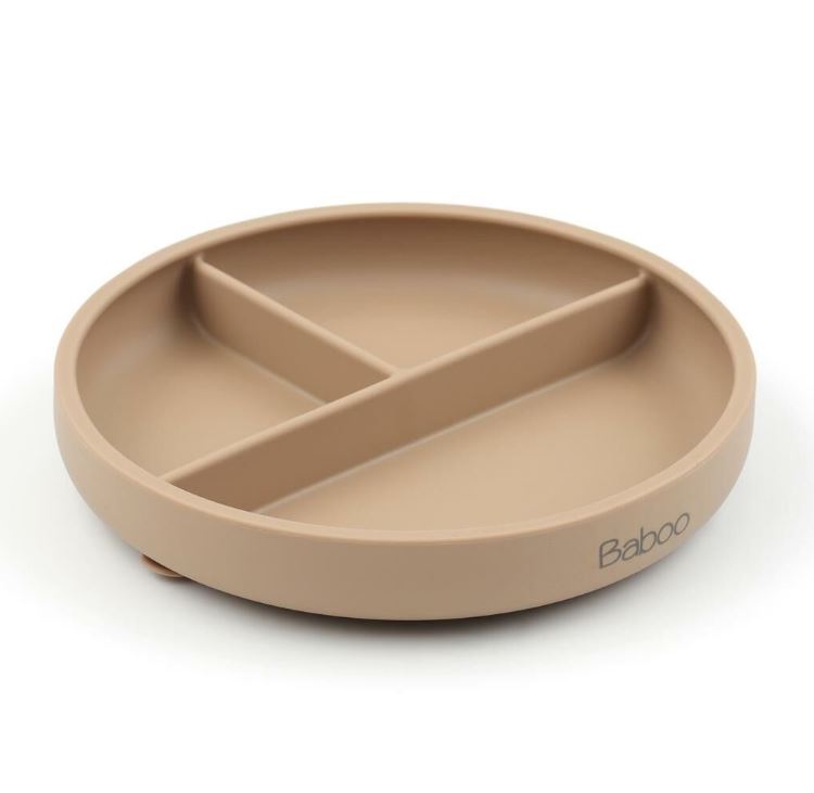 Bej Silikon Vakumlu Bebek Çocuk Bölmeli Tabak