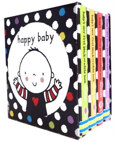 This is a mini boxed set containing four titles from the beautiful, high-contrast “Baby’s Very First Black & White” series; “Animals”, “Going Out”, “Babies” and “Faces”. The high-contrast illustrations, with splashes of spot colour are specially designed for the very young to focus on. It is an ideal little library of first words books.