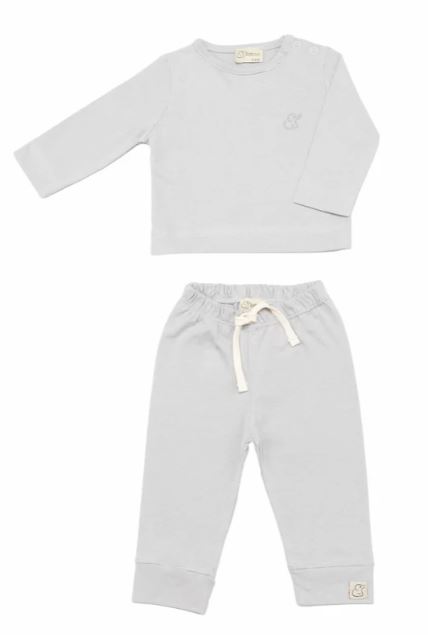 Desenli Organik Pamuk Kumaş Bebek ve Çocuk Alt Üst Takım Gri