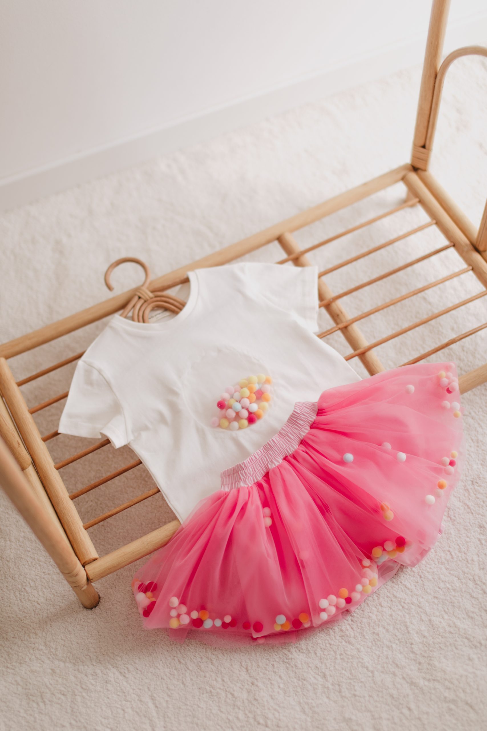 İpeksi tülü, çocuklar için özenle seçilmiş pamuk astarı, sıkmayan yumuşacık bel lastiği ve ithal ponponlarıyla hem neşeli hem de konforlu etekler…