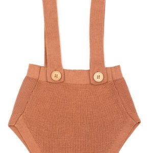 Donlu Organik Pamuk Bebek Örgü Tulum Kahverengi
