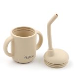 Krem Silikon Bebek Çocuk Pipetli Suluk Alıştırma Bardağı