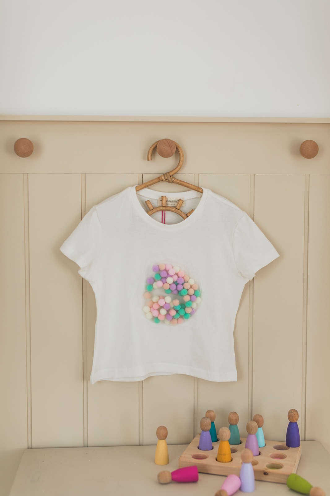 Terletmeyen %100 pamuk kumaşı, göğüs detayındaki tül içerisinde yer alan hareketli ponponlarıyla şık, konforlu ve eğlenceli t-shirtler…
