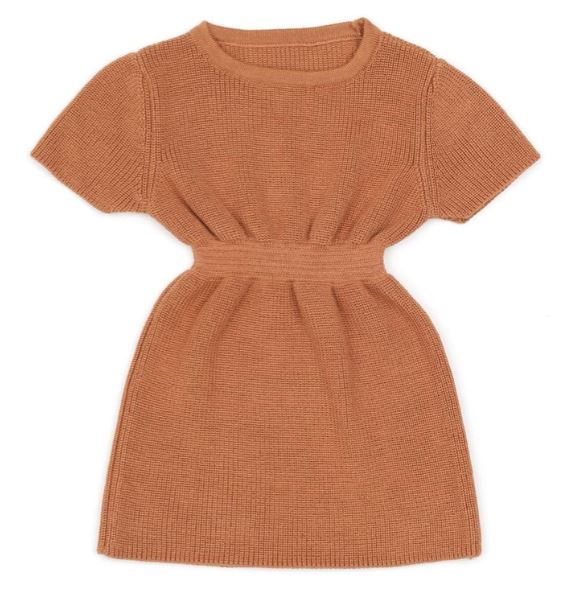 Organik Pamuk Bebek ve Çocuk Örgü Elbise Kahverengi