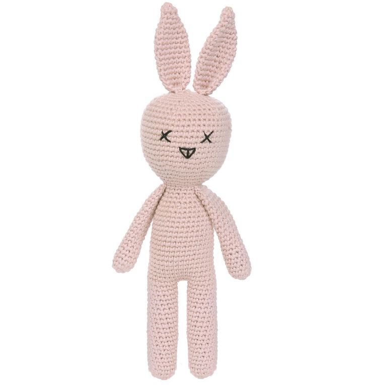 Pembe Organik Pamuk Örgü Tavşan Uyku Arkadaşı