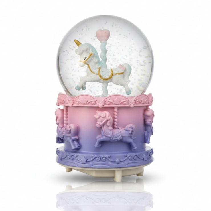 Unicorn figürlü ışıklı kar küresi.