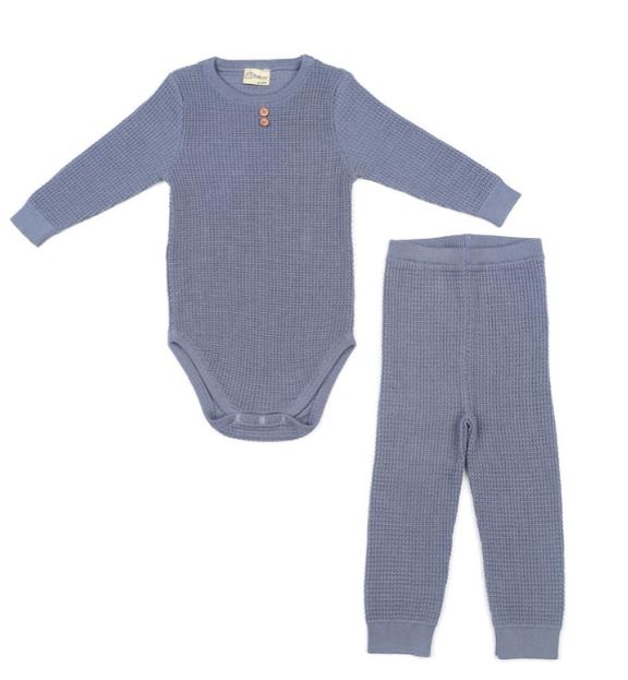 Ana Sayfa Giyim & Tekstil Bebek & Çocuk Giyim Waffle Organik Pamuk Alt-Üst Bebek Takım Mavi