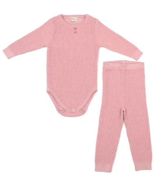 Waffle Organik Pamuk Alt-Üst Bebek Takım Pembe